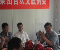 5月17日上午9:00集團公司副總經理宋雙玉、總經理助理李隆帶領集團公司工程管理部、質量安全部等有關部門負責人,在太原市第三人民醫院門診樓工程項目部召開首次交底例會和企業新CIS視覺識別系統現場試點項目授牌儀式,直屬分公司經理郭貴法和本項目部全 體管理人員參加會議。會議由工程管理部副部長王飛主持。