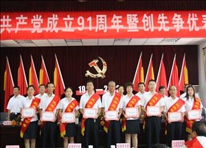 在全黨全國人民歡慶蛟龍下海、神九上天的時刻,迎來了中國共產(chǎn)黨成立91周年華誕之日,為紀念這神圣而偉大的節(jié)日,集團公司黨委隆重召開紀念中國共產(chǎn)黨成立91周年暨創(chuàng)先爭優(yōu)表彰大會。集團公司黨員領(lǐng)導干部、各黨支部領(lǐng)導、先進集體代表、優(yōu)秀共產(chǎn)黨員、各團支部書記共計110余人歡聚一堂,共同慶祝黨的生日。市住建委及市建工集團領(lǐng)導蒞臨大會并講了話。 上午9時,大會在雄壯的《國歌》聲中拉開序幕。會上,黨委書記王貴聰作了紀念建黨91周年專題講話,回顧了黨的91年的豐功偉績,總結(jié)了一年來創(chuàng)先爭優(yōu)工作,提出了當前和下半年的主要工作任務(wù),要求全體黨員一定要繼承和發(fā)揚黨的優(yōu)良傳統(tǒng)和作風,牢記黨的宗旨,以更加奮發(fā)有為的精神狀態(tài),求真務(wù)實的工作作風,團結(jié)和帶領(lǐng)全公司廣大職工,埋頭苦干,扎實工作,與時俱進,奮力拼搏,為實現(xiàn)集團公司三年發(fā)展規(guī)劃,為企業(yè)跨越發(fā)展,為集團公司員工更有尊嚴而努力奮斗,以優(yōu)異成績迎接黨的十八大! 大會表彰了一年來在創(chuàng)先爭優(yōu)活動中涌現(xiàn)出的先進集體和優(yōu)秀個人。黨委委員王斌宣讀了《表彰決定》,黨委領(lǐng)導分別為8個先進黨支部、6個星級黨員先鋒工程、50名優(yōu)秀共產(chǎn)黨員、6名優(yōu)秀共產(chǎn)黨員標兵,9名優(yōu)秀黨務(wù)工作者頒發(fā)了獎牌或證書。優(yōu)秀黨員代表十五分公司主任工程師張曉鵬,優(yōu)秀黨務(wù)工作者代表十六分公司黨支部副書記侯靜怡分別作了大會表態(tài)發(fā)言。 大會向全體黨員發(fā)出倡議。號召廣大黨員:要向優(yōu)秀看齊,爭做愛崗敬業(yè)的標兵;向優(yōu)秀共產(chǎn)黨員“五帶頭”標準看齊,永葆共產(chǎn)黨員先進性;掀起比學趕幫熱潮,爭創(chuàng)一流業(yè)績。 大會由黨委副書記宋雙玉主持,他要求各級組織,要結(jié)合實際認真貫徹落實本次會議精神,把創(chuàng)先爭優(yōu)活動形成的先進思想、先進作風、先進精神發(fā)揚光大;把上級組織和黨委的要求落實到實際工作中;把黨日活動激發(fā)出的熱情干勁和井岡山精神貫徹弘揚到企業(yè)各項工作之中,以加快發(fā)展、重樹形象、增加積累、增強實力、造福員工、回報社會的優(yōu)異成績迎接黨的十八大勝利召開! 大會在莊嚴的《國際歌》聲中落幕。