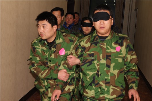 孤島求生”這個項目是要求人只知道自己的任務而不知道其它島上的任務,這個項目主要是考驗一個團隊在接到任務后高、中、基層員工的相互配合與溝通。盲人(是基層員工)、啞人(中層領導)、健全人(高級領導)、在訓練的過程中,隊員們都為團隊完成訓練科目各自發揮了重要作用,但是如果沒有統一的指揮,團隊就會出現混亂,訓練科目也難以成功完成。