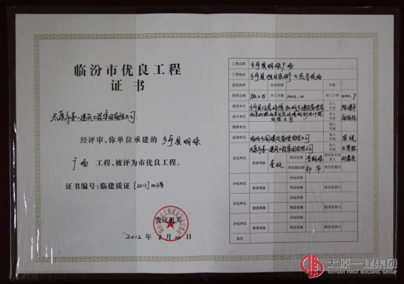 臨汾市優(yōu)良工程-鄉(xiāng)寧縣明珠廣場(chǎng)工程