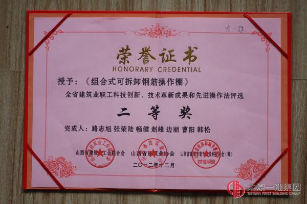 12月27日,全省建筑業職工科技創新成果表彰大會在經貿賓館召開。會上,由集團公司總部和十七分公司共同研發的《組合式可拆卸鋼筋操作棚》喜獲二等獎、第二項目工程管理處的《高靈敏性軟土質地基處理胞腔袋施工工法》榮獲三等獎。集團公司工會榮獲優秀組織獎,龍城路橋建筑公司等單位的《附著升降腳手架防墜裝置》等四項工法及科技創新成果獲得提名獎。大會由山西省建筑業工會聯合會、山西省建筑業協會、山西省建筑節能與建設科技協會組織。山西省建筑業工會聯合會主席彭順利、山西省建筑業協會副會長、秘書長張新民出席大會為獲獎單位頒獎,并作重要講話。