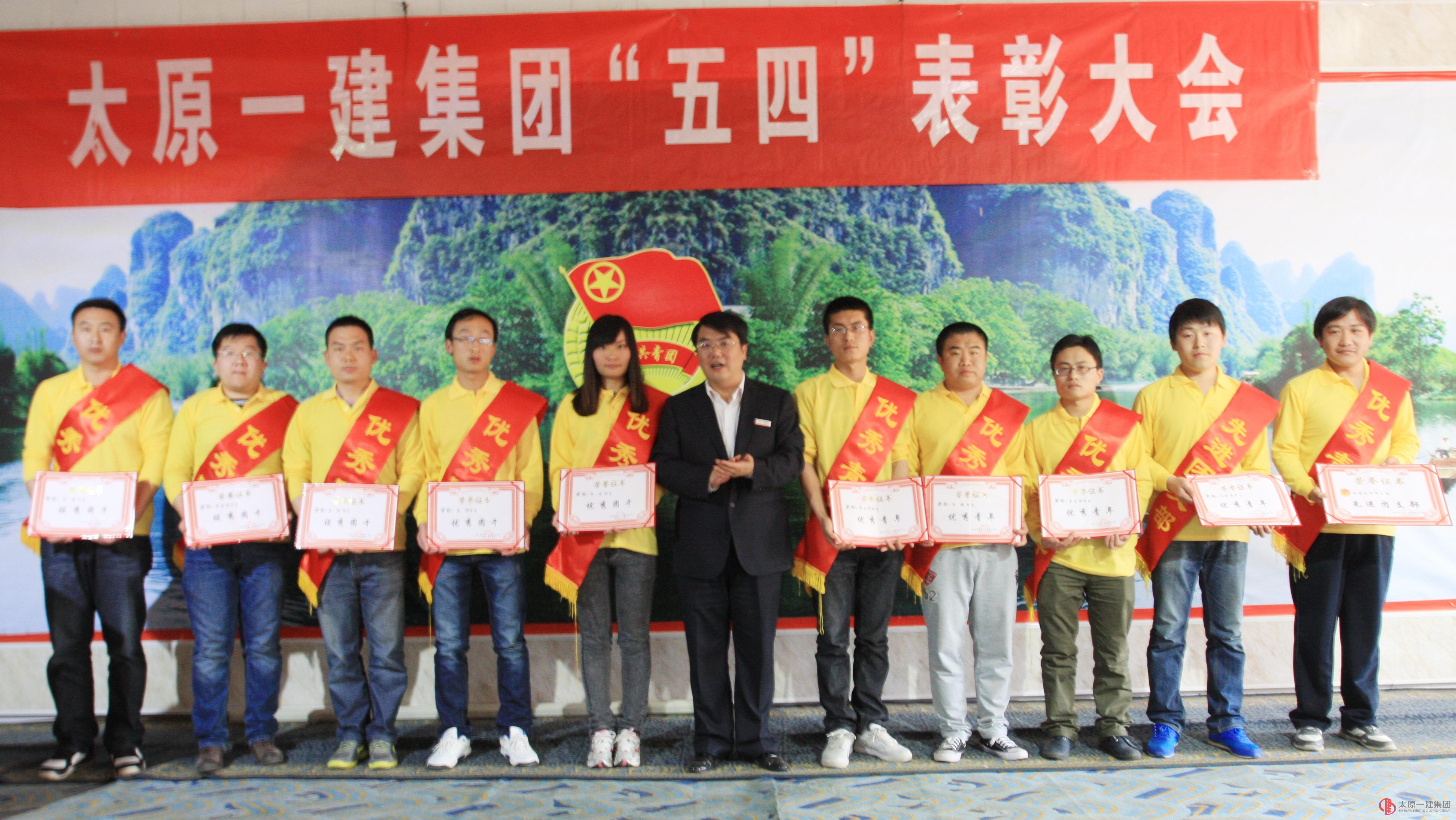 太原一建集團2013年五四表彰大會于4月30日下午在忻州奇水會議中心召開。黨委副書記宋雙玉、黨委委員、工會主席李瑞琪代表集團公司領導出席了大會。培訓中心主任王麗鶯參加了大會,大會由團委副書記徐婷主持。會上,團委委員高強、朱惢分別宣讀了《關于調整基層團組織機構設置及名稱的通知》和《關于表彰先進團支部、優秀團干、優秀青年、先進青年的通知》宋雙玉、李瑞琪、王麗鶯、徐婷分別為獲獎集體和個人頒發了獎牌和榮譽證書。最后,宋雙玉做重要講話,他要求集團公司團員及青年要做好時間的主人、學習的主人、價值的主人,為集團公司創新發展、跨越發展、和諧發展、全面發展再做新的貢獻!會后,全體受表彰人員進行合影留念。
