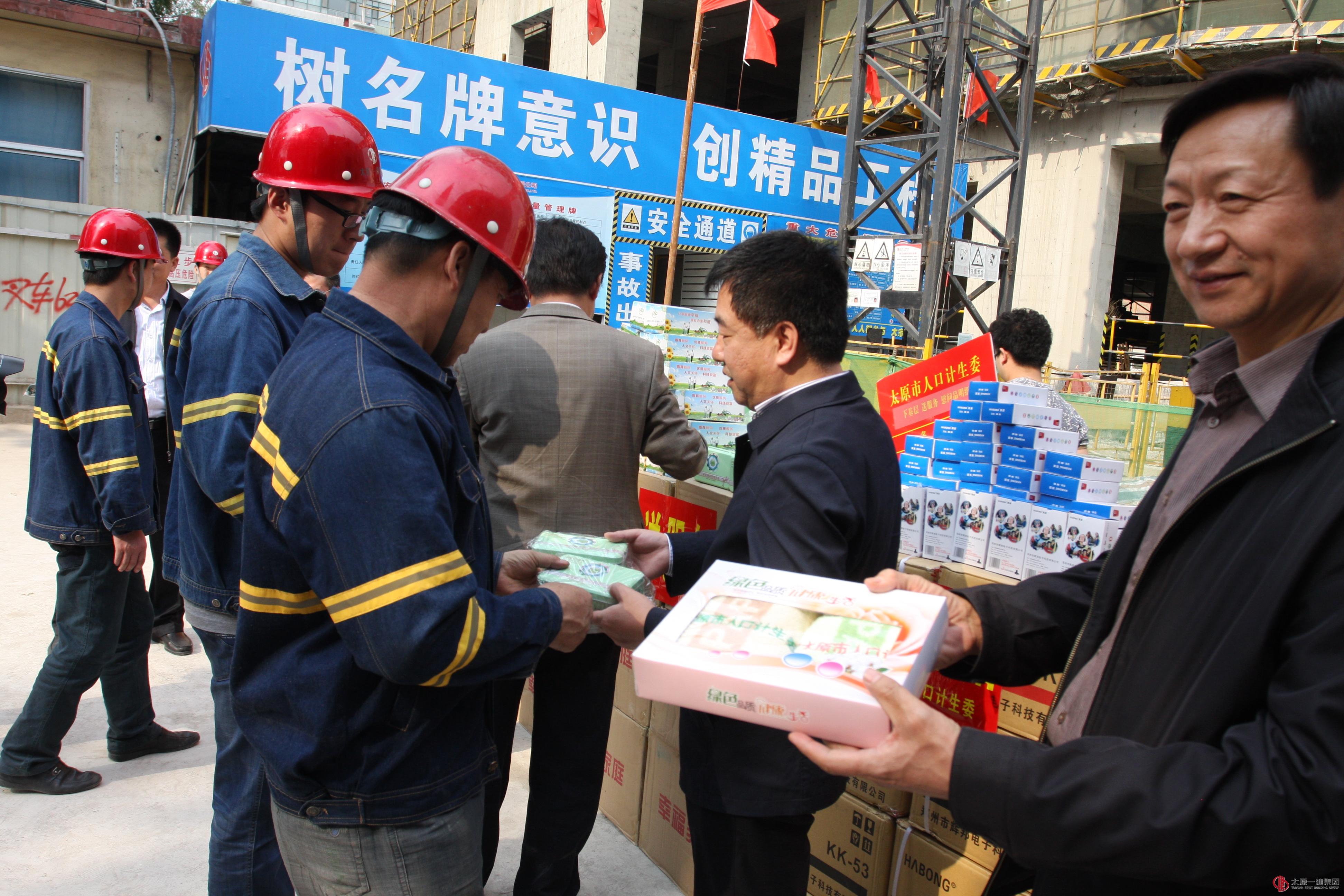 4月28日下午,太原市人口計(jì)生委“下基層、送愛(ài)心、服務(wù)重點(diǎn)工程”慰問(wèn)活動(dòng)在直屬分公司所承建的市第三人民醫(yī)院門(mén)診樓工程項(xiàng)目部舉行,山西省衛(wèi)生和計(jì)劃生育委員會(huì)副主任楊建勇、太原市人口計(jì)生委主任崔燕等上級(jí)領(lǐng)導(dǎo)到場(chǎng)并講話。上級(jí)領(lǐng)導(dǎo)希望廣大施工員要注意健康保健,注意安全生產(chǎn),更加舒心、放心、安心的生產(chǎn)生活。集團(tuán)公司董事長(zhǎng)王貴聰對(duì)市人口計(jì)生委此次送愛(ài)心活動(dòng)表示了感謝,并對(duì)現(xiàn)場(chǎng)施工人員提出了保證健康安全生產(chǎn)的要求,他指出,本次活動(dòng)是市人口計(jì)生委開(kāi)展黨的群眾路線教育實(shí)踐活動(dòng)的新舉措,是實(shí)實(shí)在在的為建筑工人辦好事辦實(shí)事接地氣的具體體現(xiàn)。活動(dòng)中領(lǐng)導(dǎo)們?yōu)槭┕と藛T分發(fā)了慰問(wèn)品,并進(jìn)行了座談交流,有關(guān)法律專(zhuān)家和健康顧問(wèn)還現(xiàn)場(chǎng)為工人做了咨詢。活動(dòng)由工會(huì)主席李瑞琪主持,