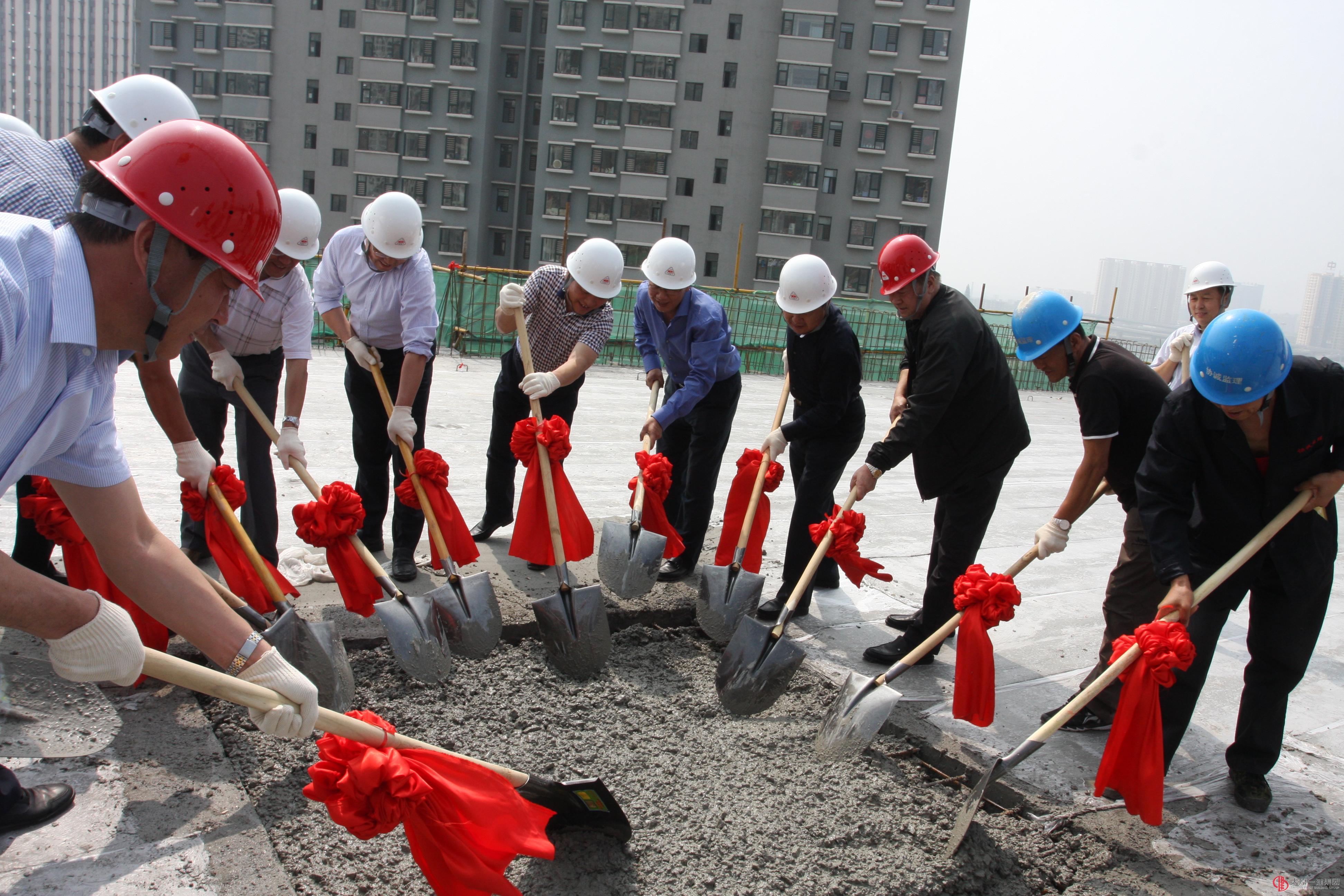 儀式上項目經(jīng)理蘆濤首先介紹工程情況,甲方黨委書記王向彬、監(jiān)理單位項目副總王育晉分別講話,各方都充分肯定了施工單位從工程開工到主體封頂各施工階段以及現(xiàn)場文明施工、工程質(zhì)量、項目管理等方面所取得的成績。集團(tuán)公司副董事長宋雙玉代表施工單位對各方的指導(dǎo)表示衷心的感謝,表示要繼續(xù)發(fā)揚釘子精神和魯班精神,科學(xué)施工、聚焦能量、抓好環(huán)節(jié)、抓住節(jié)點、合理配置資源,維護(hù)好各方利益,打造優(yōu)質(zhì)精品工程,希望建筑人和食品人優(yōu)勢互補(bǔ),攜手合作,同心協(xié)力,實現(xiàn)共贏。