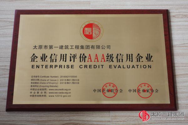 集團公司被中國企業聯合會、中國企業家協會評為2015年至2018年的AAA級信用企業!