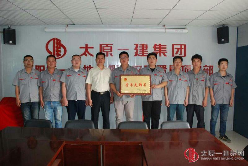 2016年6月6日下午,直屬分公司黨支部和團支部受集團公司團委的委托,由分公司黨支部書記郭貴法、團支部書記姚學斌分別為唐久總部大樓項目部、晉陽街一號地塊棚戶區項目部頒發“青年先鋒號”榮譽稱號,項目經理楊平、孟文彪及項目部全體青年員工進行接牌儀式。