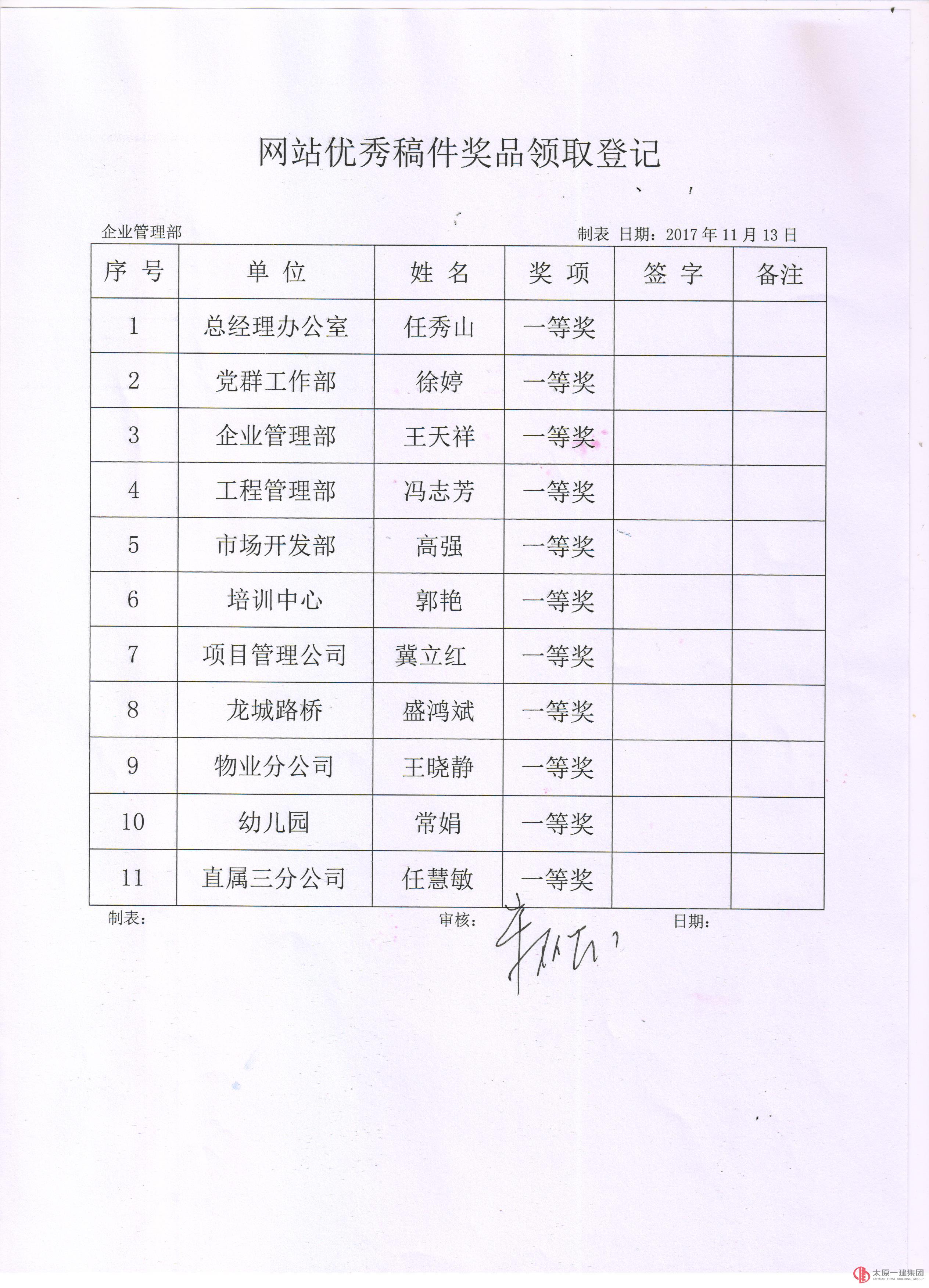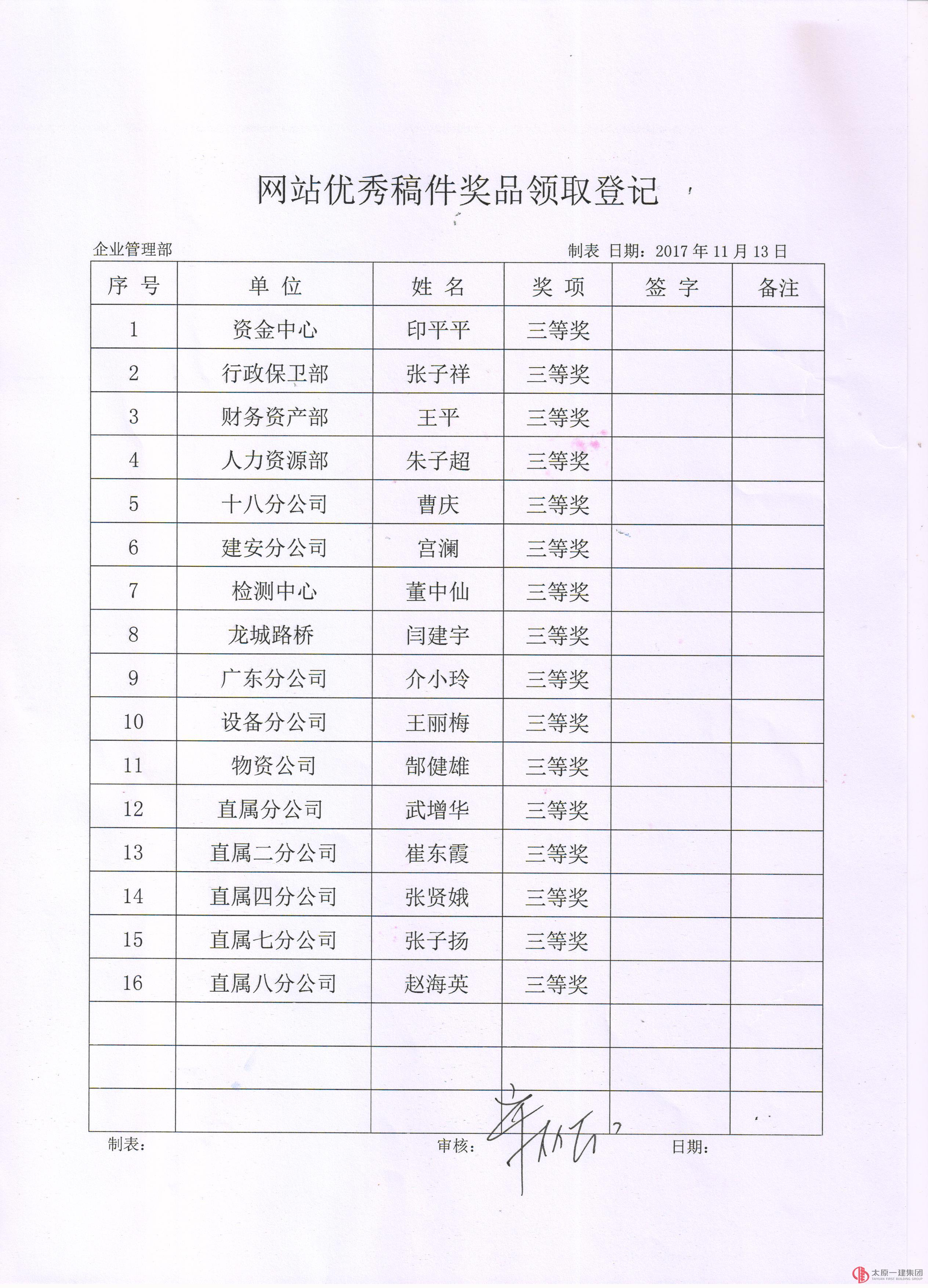 企業(yè)網(wǎng)站是企業(yè)對外門戶,代表著企業(yè)形象,發(fā)揮著喉舌作用,網(wǎng)站宣傳報道對于企業(yè)正面形象的樹立及知名度的提高具有重要意義。今年以來,各單位各部門圍繞中心,服務(wù)大局,堅持正面宣傳,堅持團(tuán)結(jié)穩(wěn)定鼓勁,在網(wǎng)站宣傳報道上作出了積極的貢獻(xiàn),據(jù)統(tǒng)計,從2016年11月7日—2017年11月6日,集團(tuán)公司機(jī)關(guān)各部門和各基層單位122名宣傳報道者全年共計發(fā)布882篇宣傳報道,為集團(tuán)公司在社會各界影響力的提升做出了貢獻(xiàn),使集團(tuán)公司網(wǎng)站在全國建筑業(yè)系統(tǒng)網(wǎng)站中無論從更新速度、宣傳內(nèi)容、報道數(shù)量等各方面都名列前茅。為此,企業(yè)管理部根據(jù)全年門戶網(wǎng)站報道宣傳的內(nèi)容、數(shù)量、傳播力和影響力評選,經(jīng)集團(tuán)公司宣傳思想工作領(lǐng)導(dǎo)組審核通過,對優(yōu)秀稿件作者給予表彰并獎勵。同時, 集團(tuán)公司希望各基層單位、機(jī)關(guān)各部門今后積極關(guān)注網(wǎng)站、踴躍發(fā)表文章,全面宣傳企業(yè)文化和信息,進(jìn)一步擴(kuò)大企業(yè)知名度和美譽(yù)度!