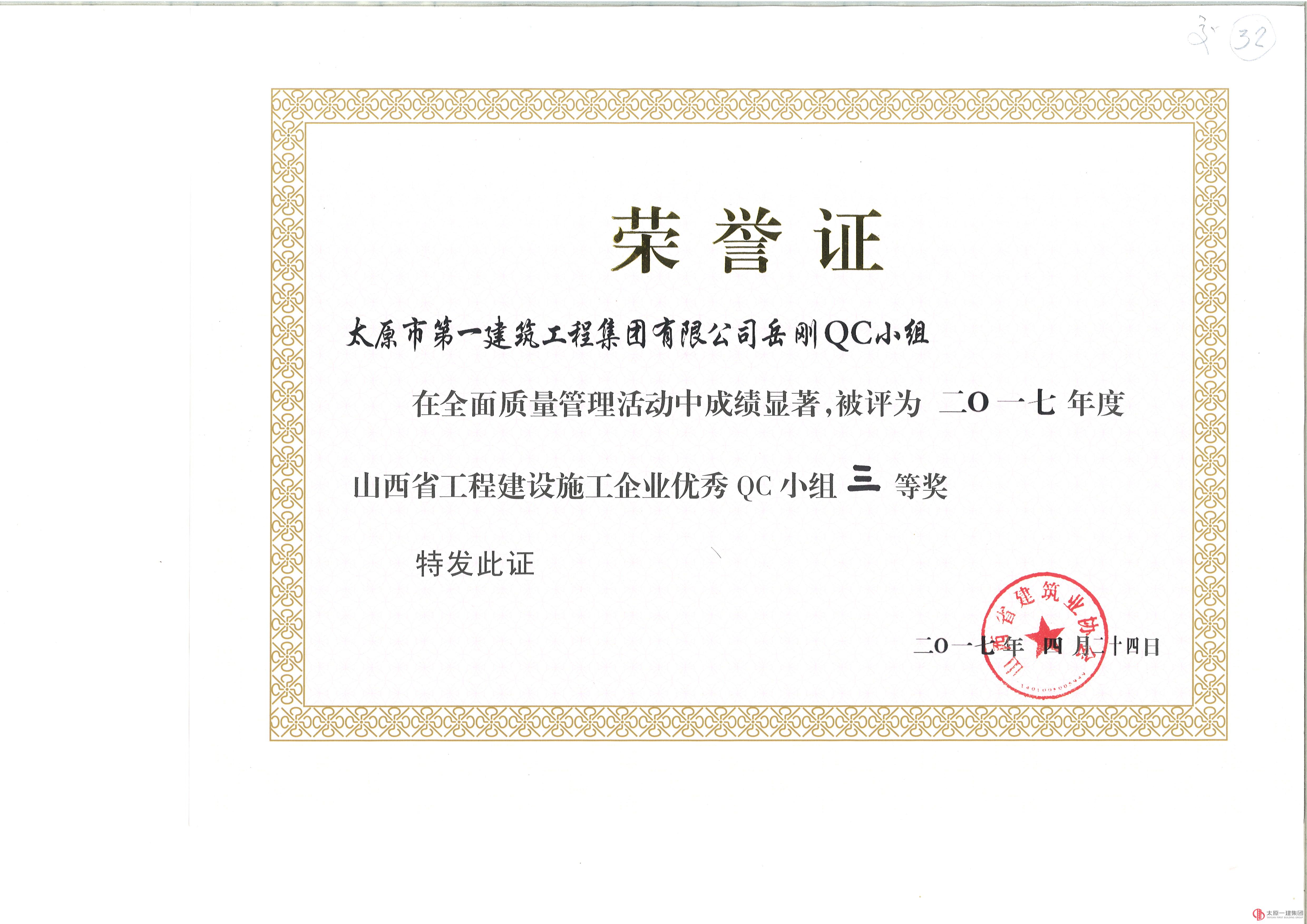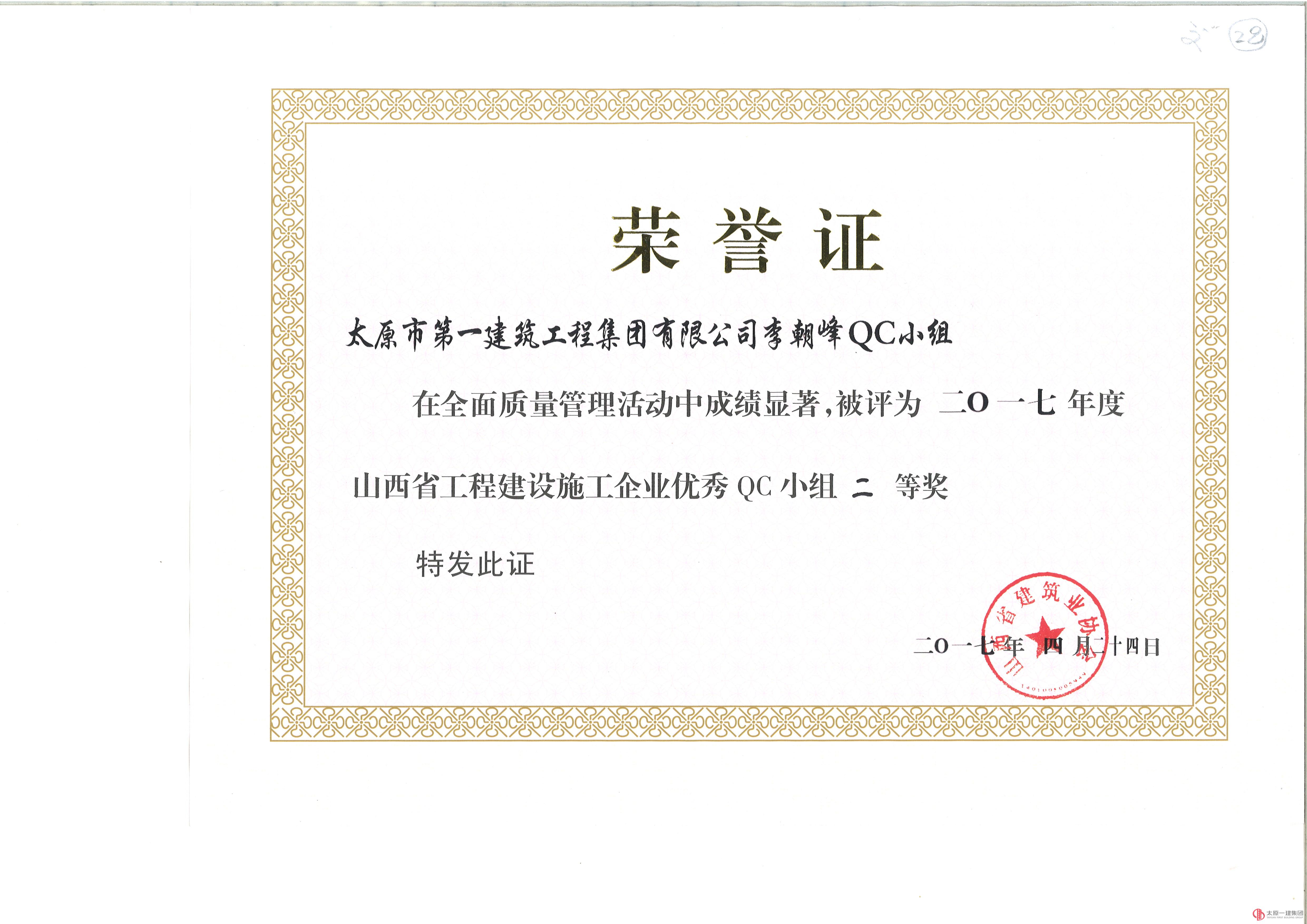 吳原宏QC小組獲國家級QC成果,課題:《降低腳手架防傾覆裝置機位垂直度偏差率》