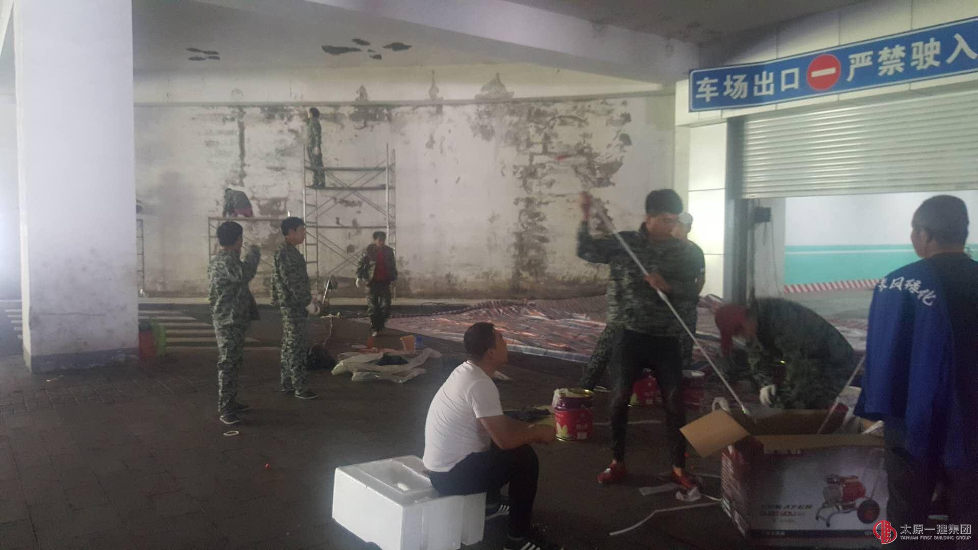 因長風商務區此次涂飾工程地段較為特殊,搶修工作只能在夜間進行 ,為保證工程質量,分公司黨支部書記經理王君同志親自坐鎮指揮工作,和職工一起奮斗在一線。經過兩個晝夜的不停施工,終于在16號早上6點,圓滿的完成了搶修任務 。