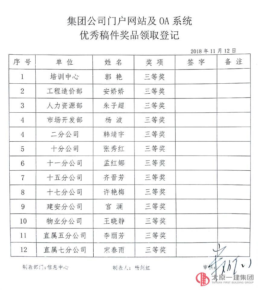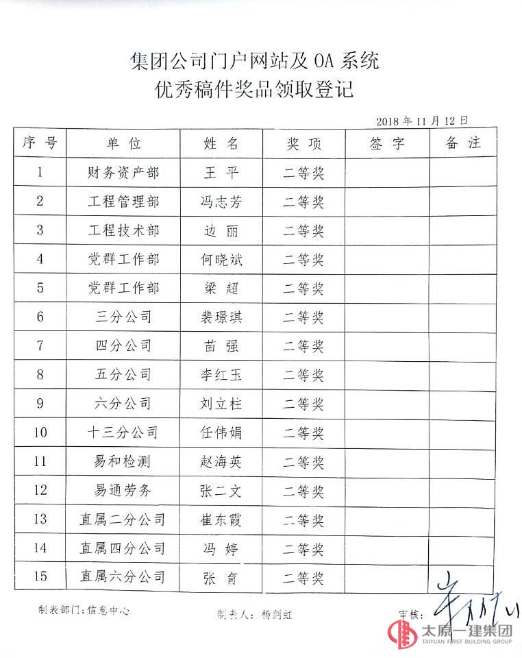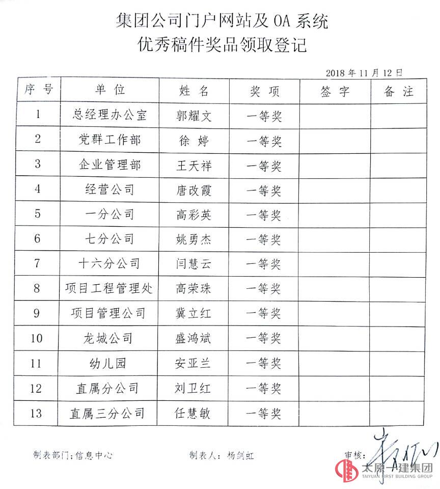 2018年集團公司全面開展信息化建設工作以來,OA自動化辦公系統的上線與企業門戶網站協同配合多渠道共同為積極宣傳企業形象起到了重要的作用,通訊報道的發表宣傳對于企業正面形象的樹立及知名度的提高更是具有重要的意義。今年以來,各單位各部門圍繞中心,服務大局,堅持正面宣傳,堅持團結穩定鼓勁,在門戶網站及OA系統宣傳報道工作中作出了積極的努力。據統計,從2017年11月7日—2018年11月6日,集團公司機關各部門和各基層單位134名宣傳報道者全年共計發布1017篇宣傳報道,進一步提升了集團公司在社會各界的影響力及內部宣傳力。為此,信息中心根據全年門戶網站報道及OA系統中宣傳的內容、數量、傳播力和影響力評選,按照《企業規章制度》中關于“公司網站管理辦法”第二十二條之規定,經集團公司信息中心統計,宣傳思想工作領導組審核通過,對優秀稿件作者給予表彰并獎勵。同時, 集團公司希望各基層單位、機關各部門在今后繼續圍繞企業中心工作,認真貫徹全國宣傳思想工作會議精神,積極關注各類通訊報道、踴躍發表文章,自覺肩負起新形勢下宣傳思想工作的使命任務,銳意改革創新,勇于擔當作為,奮力開創集團公司宣傳思想工作新局面,為全面實現企業各項既定目標提供輿論支持和思想引領,為集團公司各項事業的發展提供堅強的思想政治保證和強大的精神力量!
