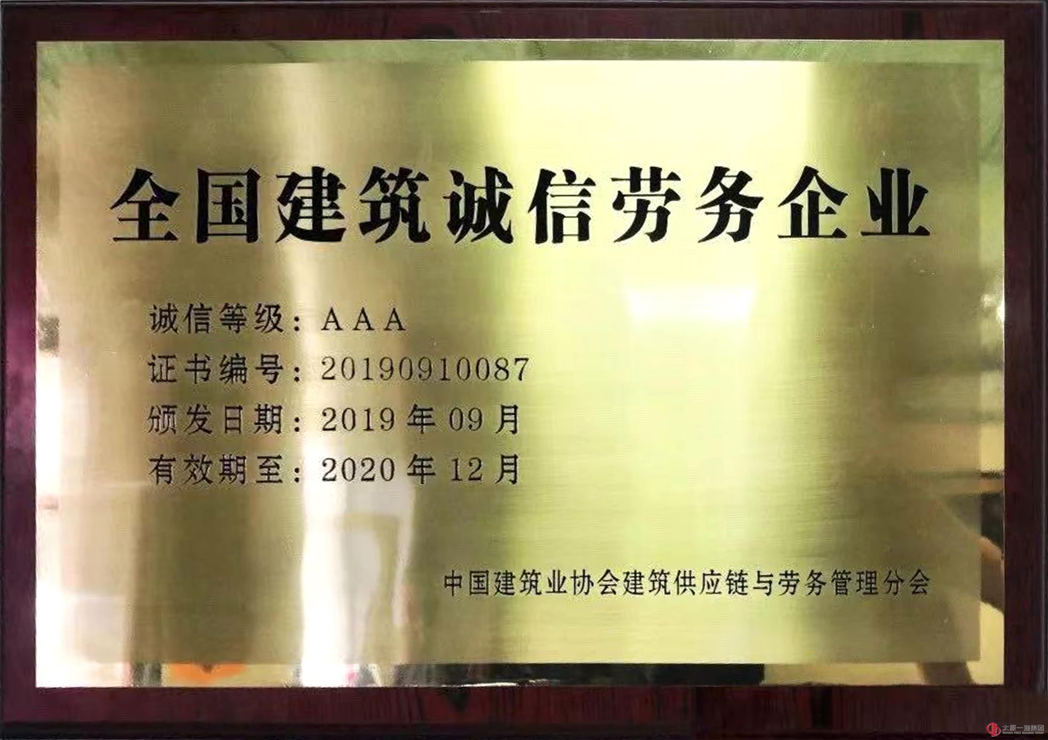 “AAA級全國建筑業誠信勞務企業”是我國建筑勞務企業最高誠信等級榮譽。該榮譽的獲得是易通勞務公司多年來誠信經營積累的無形資產,標志著易通勞務在誠信履約、客戶信任、社會責任等各方面均得到社會和市場的認可。