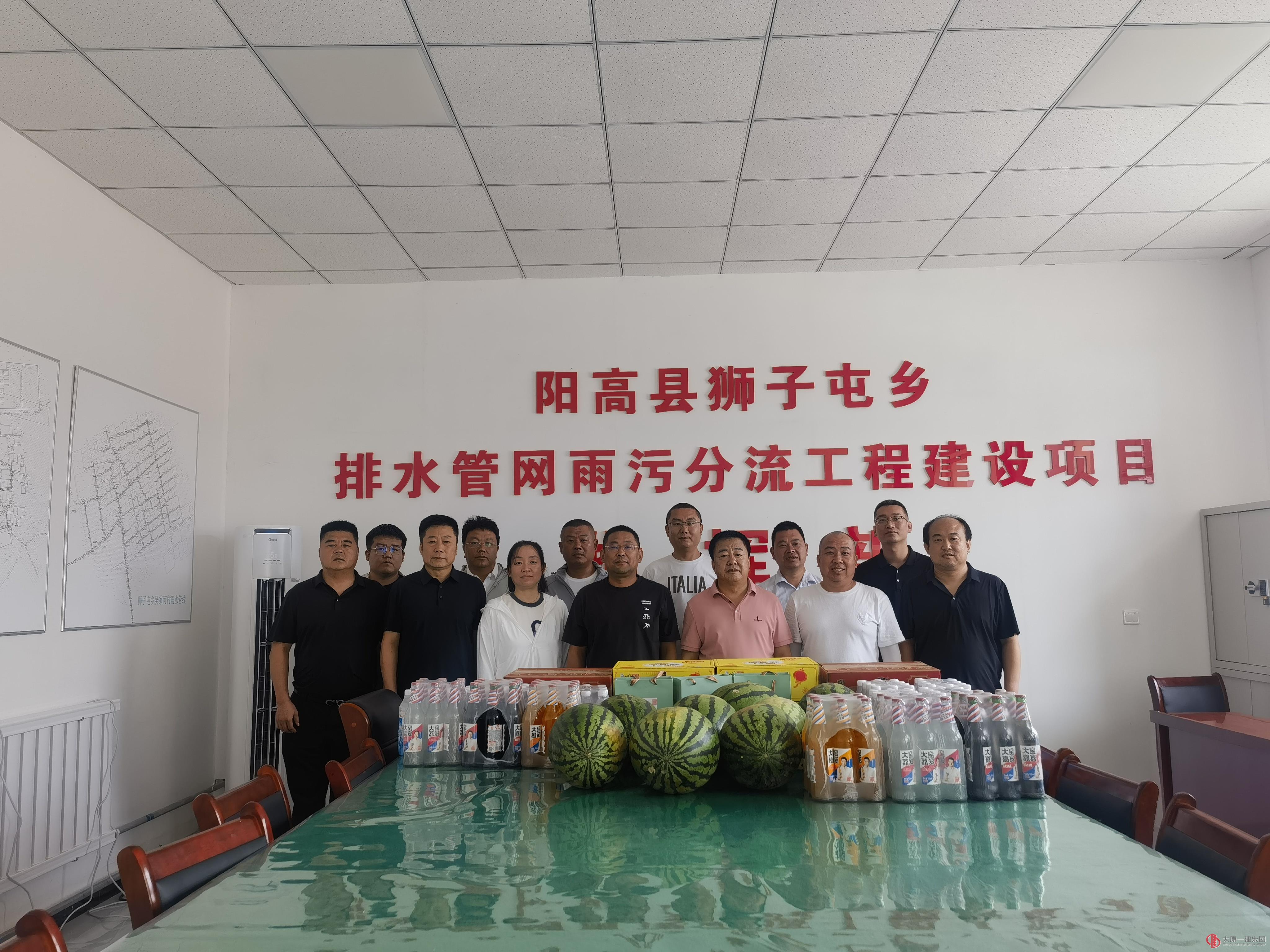 7月2日,集團公司黨委書記、董事長王貴聰、董事會、總經理辦公室主任郭耀文、設備分公司經理郜建雄、物業分公司經理李強、物業分公司工會主席王宏艷、五分公司副經理呂衛平等一行深入二分公司承建項目陽高縣獅子屯鄉排水管網雨污分流工程開展調研慰問活動。分公司黨支部書記、經理劉海飛、主任工程師趙銀柱、主任經濟師李曉玲、項目部全體管理人員參加了活動。